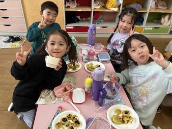 未就学のお子さんたちの親子教室でもいもだんご、ポテト、さつまいもの蒸しパン、大学芋...などなど、親子でクッキングをしたり、おやつの時間に食べたりしています!
